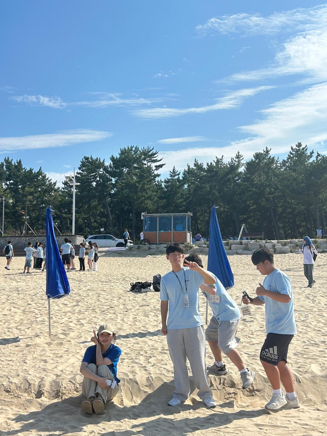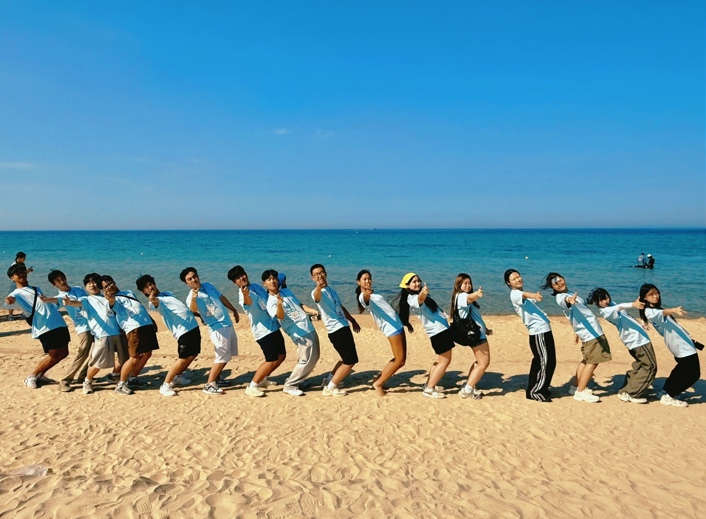 시원한 파도소리를 들으며 팀원들은 모래사장 위에서 인어공주나 서핑챌린지 같은 포즈를 시도했죠.