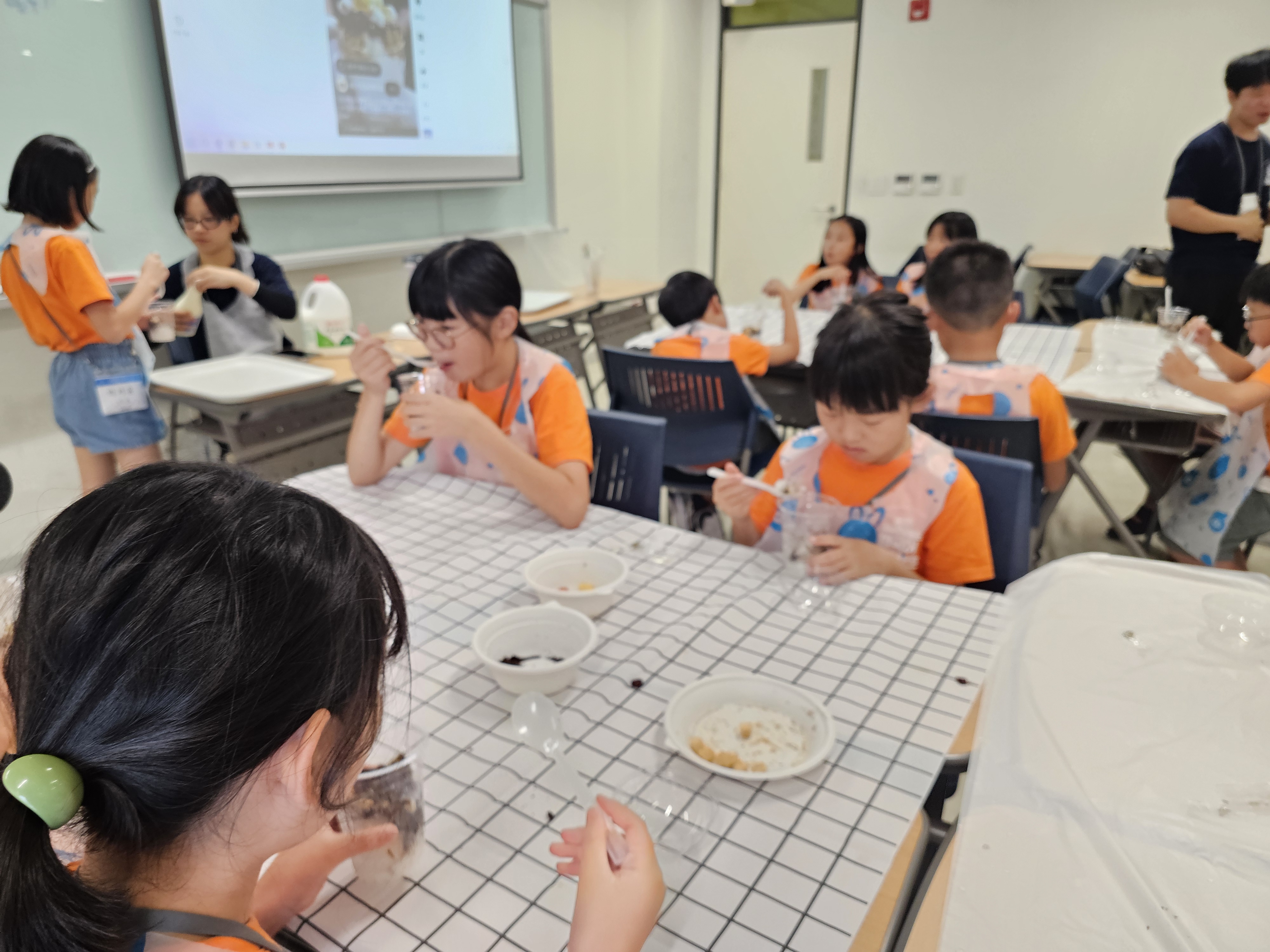 자신이 좋아하는 재료를 넣은 달콤한 팥빙수도 만들었어요.