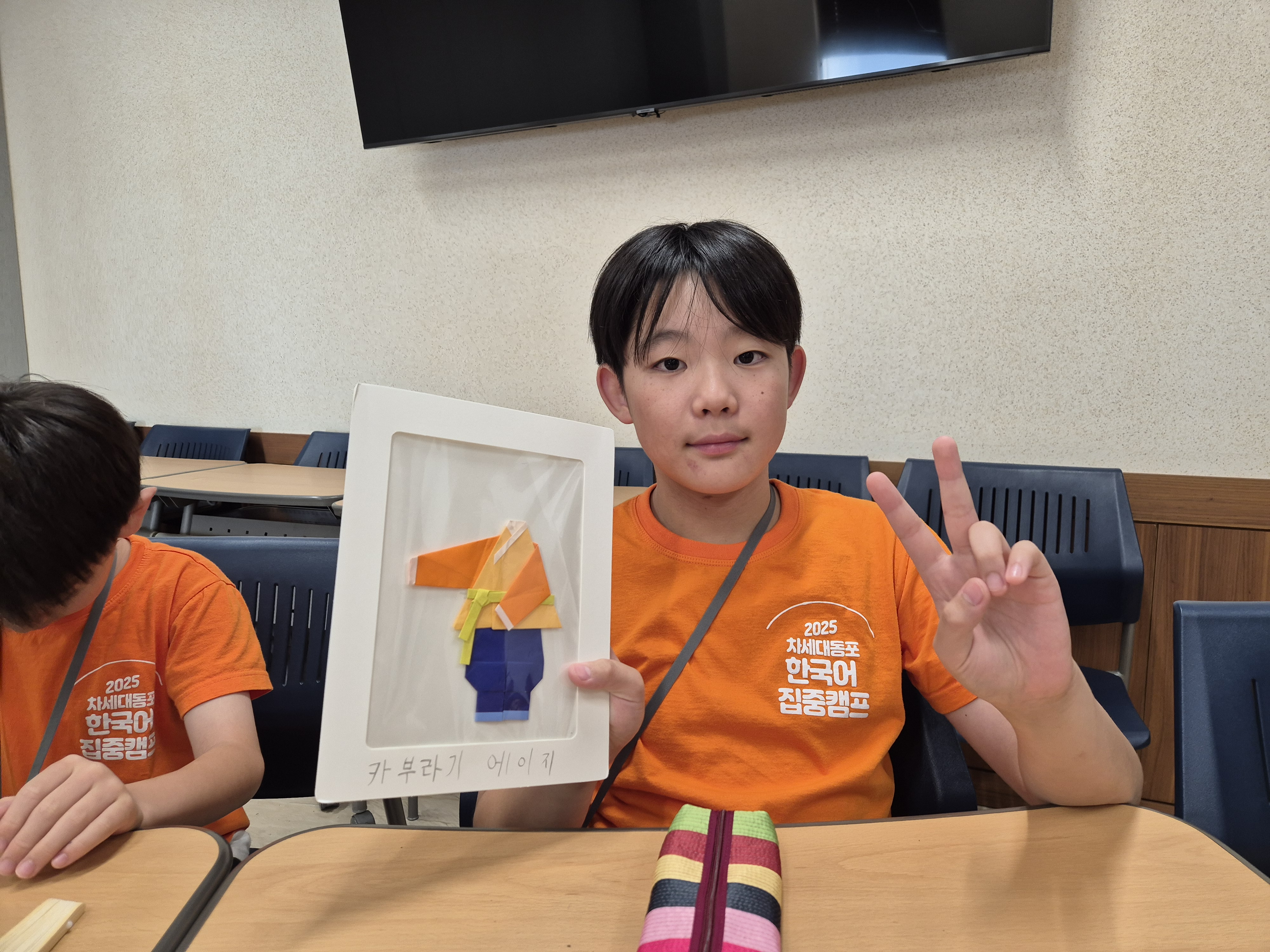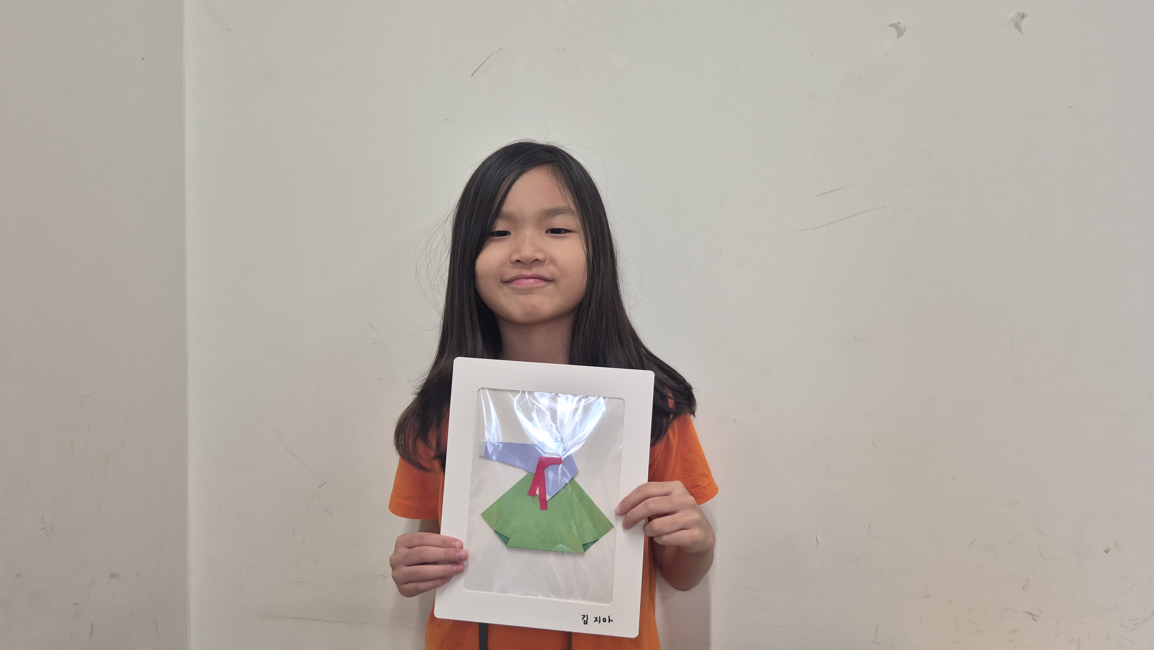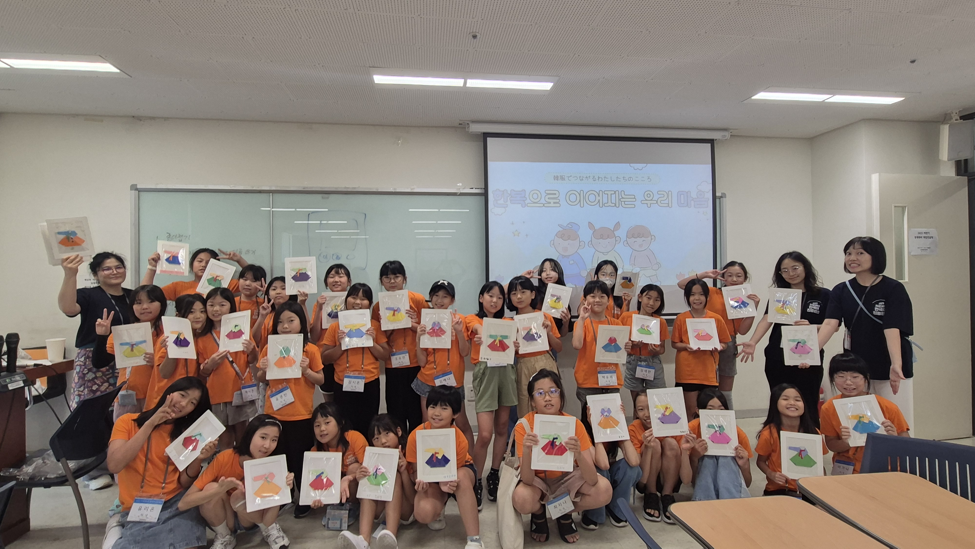 색종이를 접어 한복을 만들며 한국어와 전통 문화를 배울 수 있었습니다.