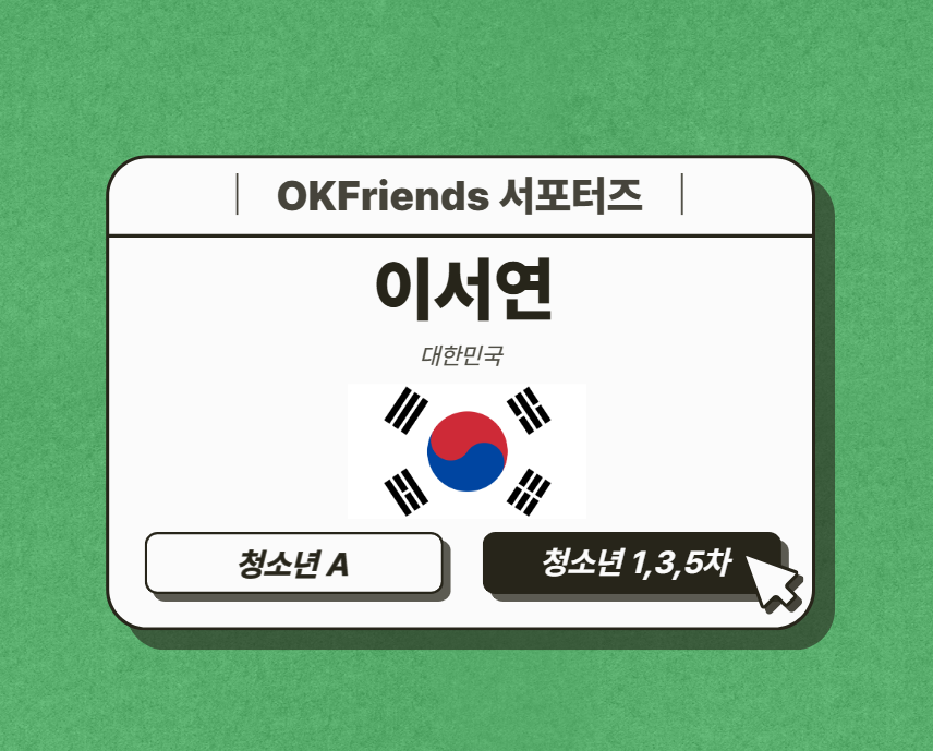 저는 초등학생 때부터 해외에서 생활하며, 한국인이라는 정체성의 고민을 안고 살아왔습니다. 한국에 방문할 때마다 해외에 거주하는 한국인이라는 어중간한 위치가 더욱 선명하게 다가왔고, 그때마다 혼란스러움을 느끼곤 했습니다. 다행히 지금은 한국인으로서의 뿌리를 확립했지만, OKFriends 서포터즈 모집 소식을 접했을 때 예전의 제 모습이 떠올랐습니다. 그 시기의 저는 문화와 언어의 경계에서 방황하기도 했지만, 동시에 새로운 시각과 열린 마음을 배워나가던 시기였습니다. 그래서 정체성의 혼란을 겪고 있을지도 모를 차세대동포 친구들에게 제가 가진 경험과 공감으로 힘이 되고 싶다는 마음이 들었습니다. 누구보다 그들의 마음을 이해할 수 있다고 확신했기에 서포터즈에 지원했습니다.