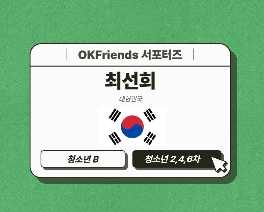 OKFriends 서포터즈 활동은 저에게 도전과 배움, 그리고 색다른 교류의 장소이었습니다. 언어와 문화, 환경의 장벽 앞에서 주저하던 제가 스스로의 한계를 넘어설 수 있었던 소중한 경험이었습니다. 특히 낯선 상황 속에서도 책임감을 갖고 끝까지 임무를 완수하며, 진정한 리더십은 능숙함이 아니라 끈기와 진심에서 비롯된다는 것을 배웠습니다.