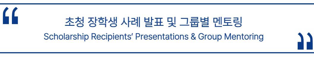 오후에는 초청 장학생 사례 발표와 그룹 멘토링 시간을 가졌습니다.