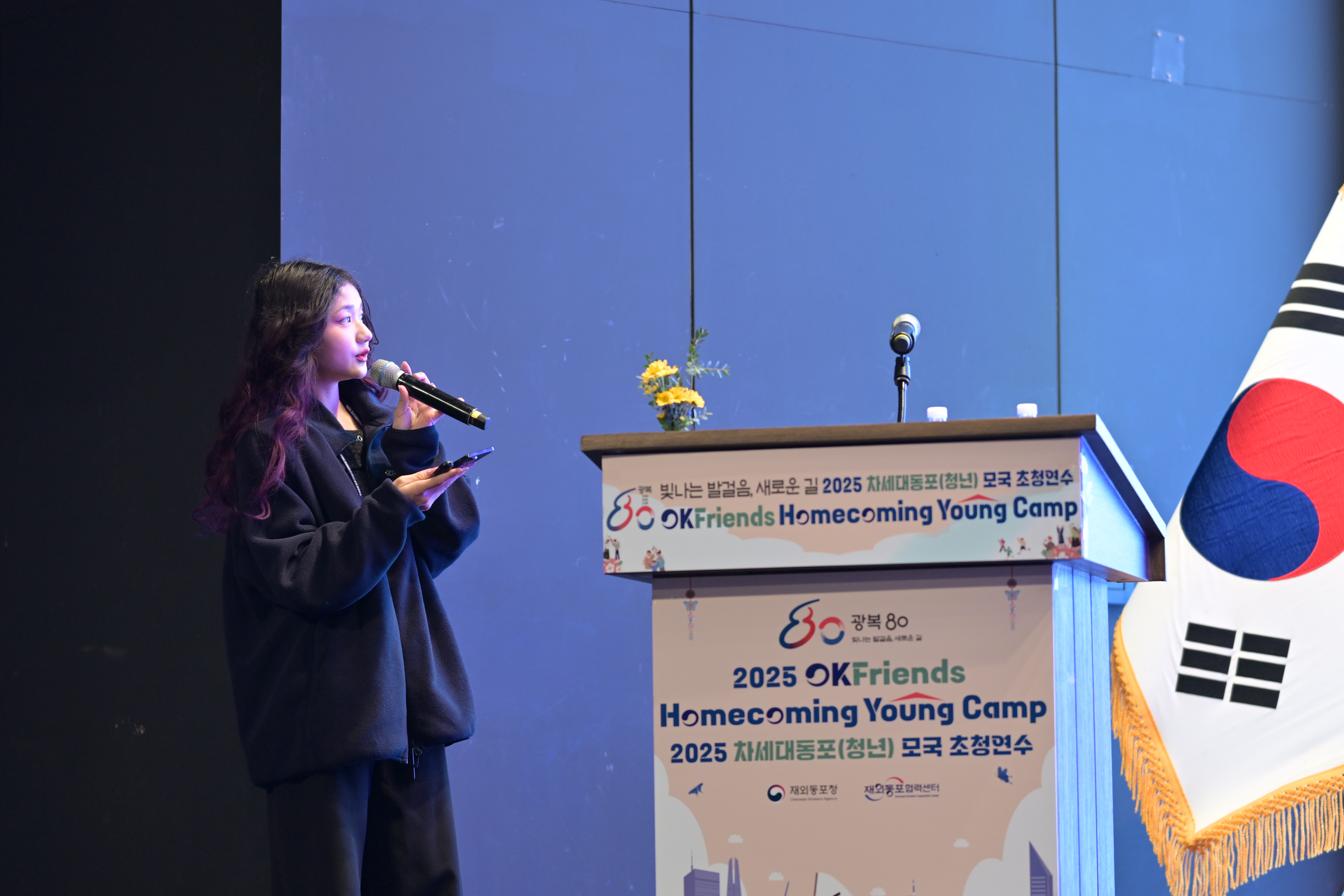 The closing ceremony was also hosted by Park Yelena. It continued with warm words of encouragement from Director Kim Young-geun of the Overseas Koreans Cooperation Center, followed by the certificate presentation.