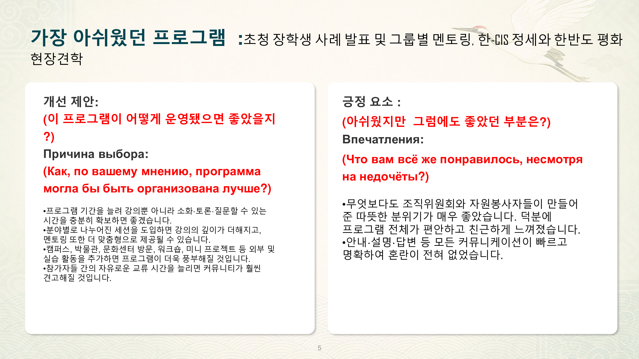 They also presented examples of how this camp helped them further develop concrete plans for studying in Korea.
